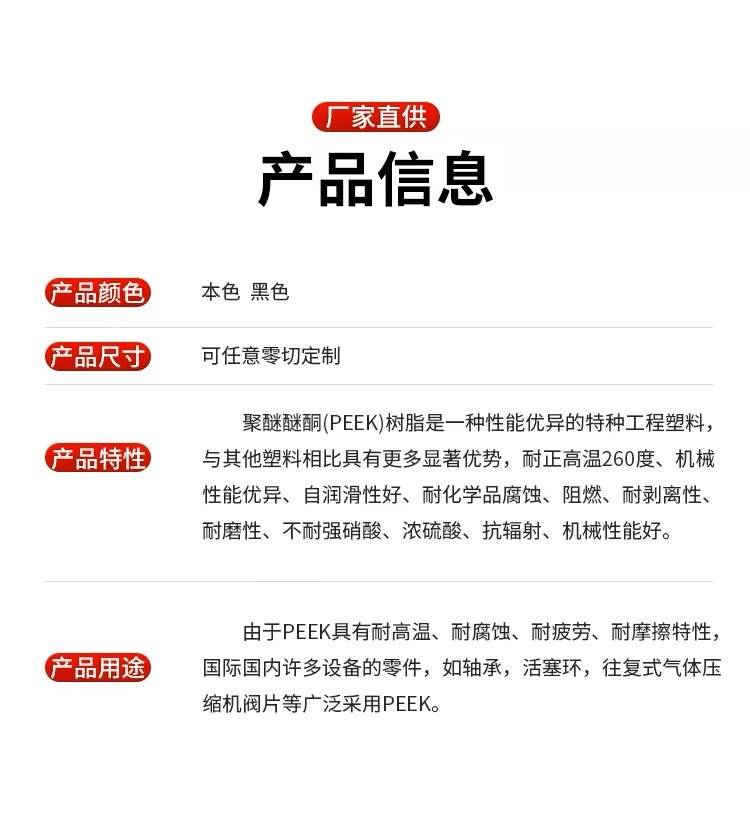 信达本色peek板加工黑色防静电聚醚醚酮棒耐高温pek板材料零件